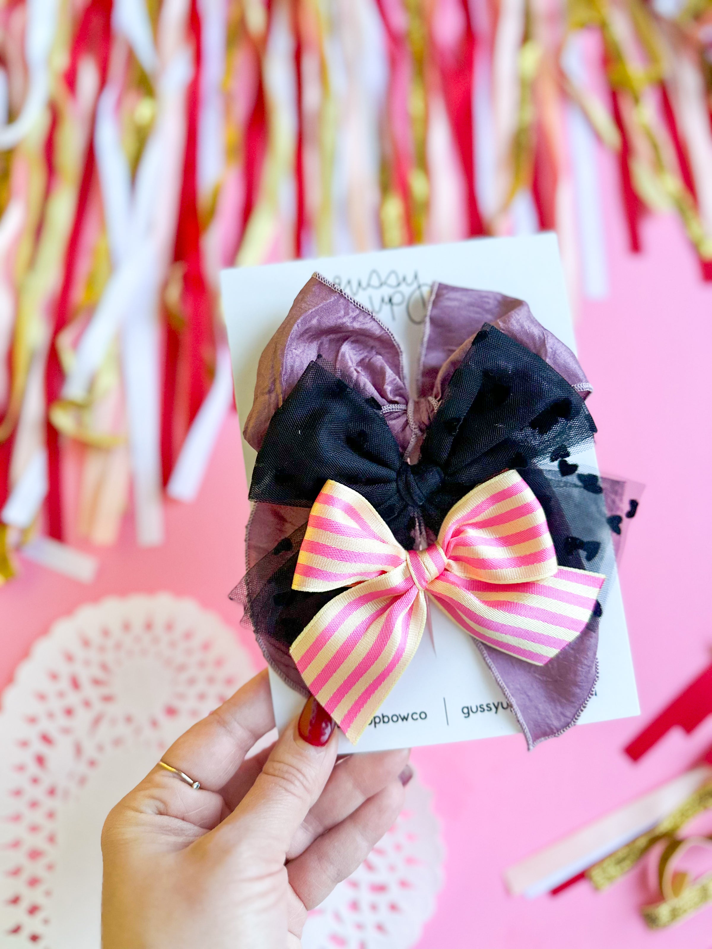 One-of-a-kind fabrics. Handmade with care. Highest quality. Period! We are all about fresh looks here at GUBC! When you buy with us, rest assured that she’ll be the only babe on the block with this bow. Unique and amazing, exactly like her. Our bows are secured with glue, so even in tiny hands they hold their shape and stay tied. It’s our GUBC bow guarantee! Please reach out to our support team with any questions.support@gussyupbowco.com